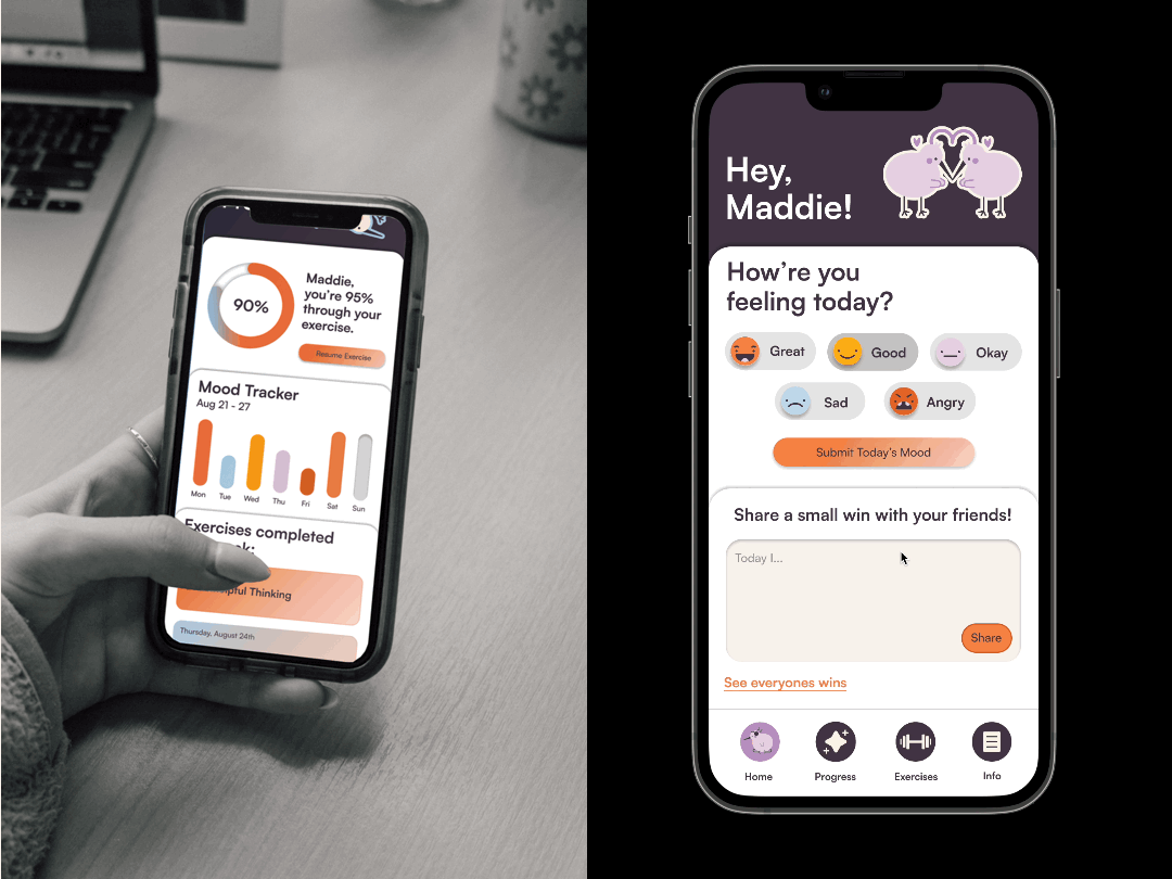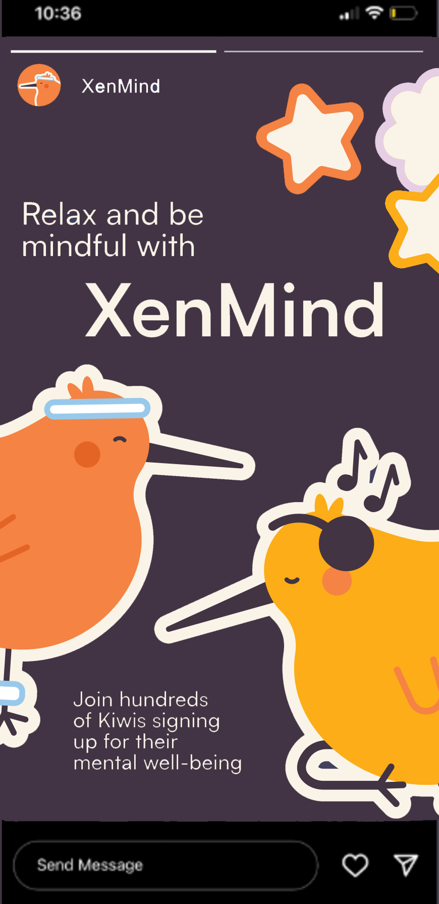The app identity of 'XenMind' was created to support the brief of mental wellbeing, and staying connected. Advertising, UX design, and graphics support this design identity.